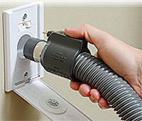 This standard inlet is the most common type used in 99% of all homes today. If you are going to be using an electric power (carpet) nozzle, you will have to plug the 6 ft. pigtail cord into a nearby 110 volt outlet.